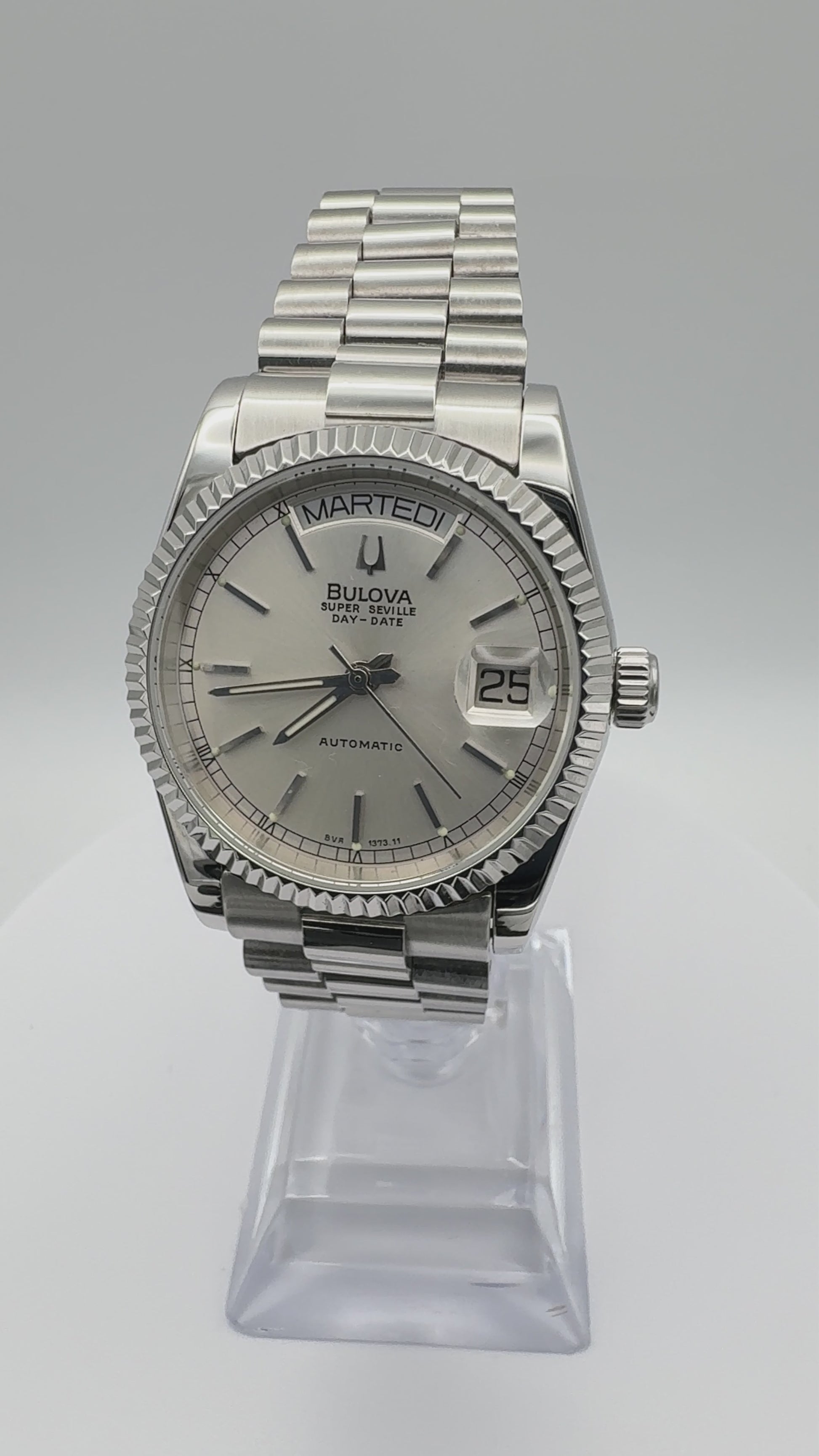 Bulova Super Seville Argento Day-Date President Vintage Automatik-Armbanduhr: