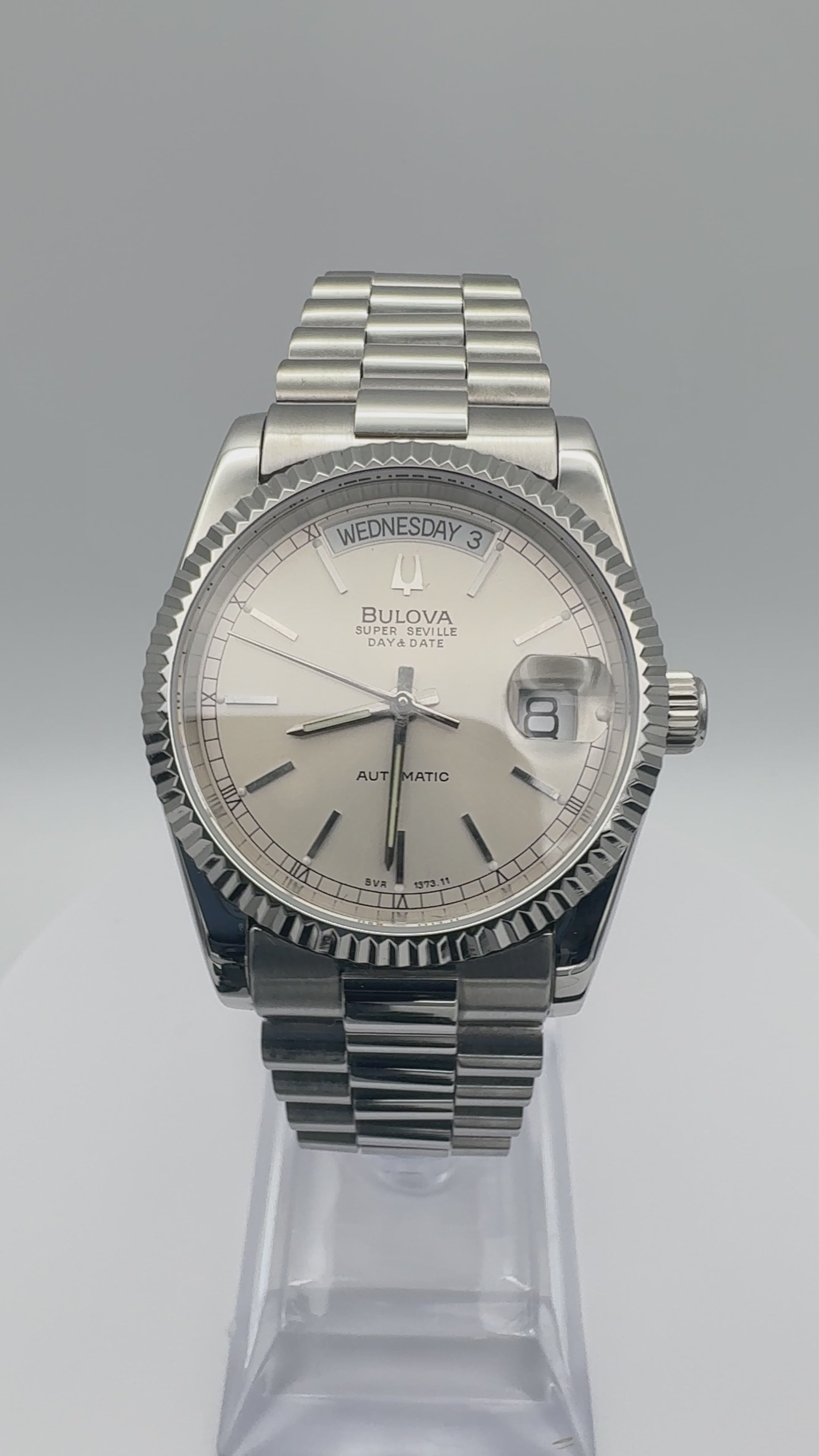 Bulova Super Seville Silver Dial Day-Date President Vintage Automatik-Armbanduhr
