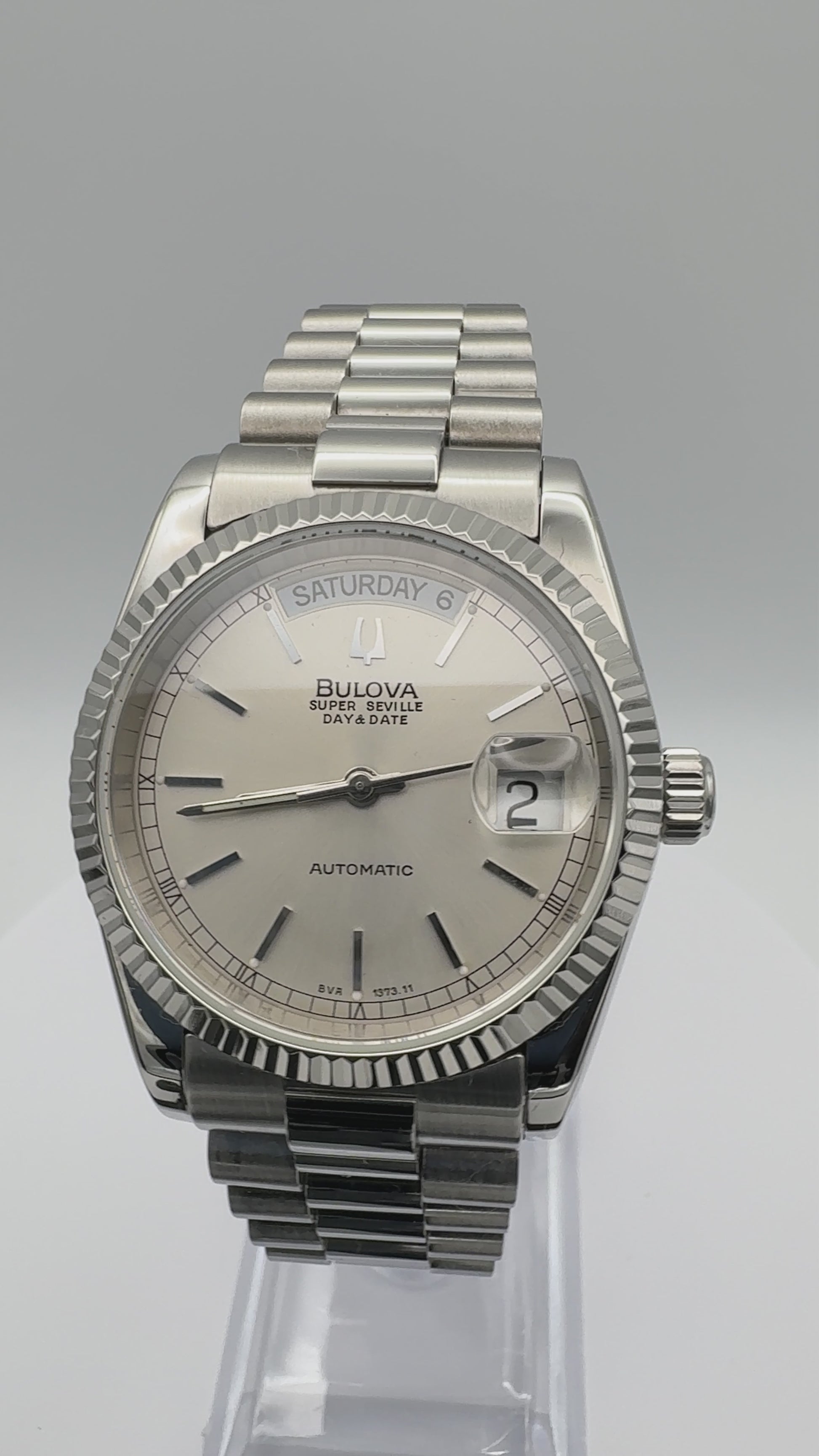 Bulova Super Seville Silver Dial Day-Date President Vintage Automatik-Armbanduhr