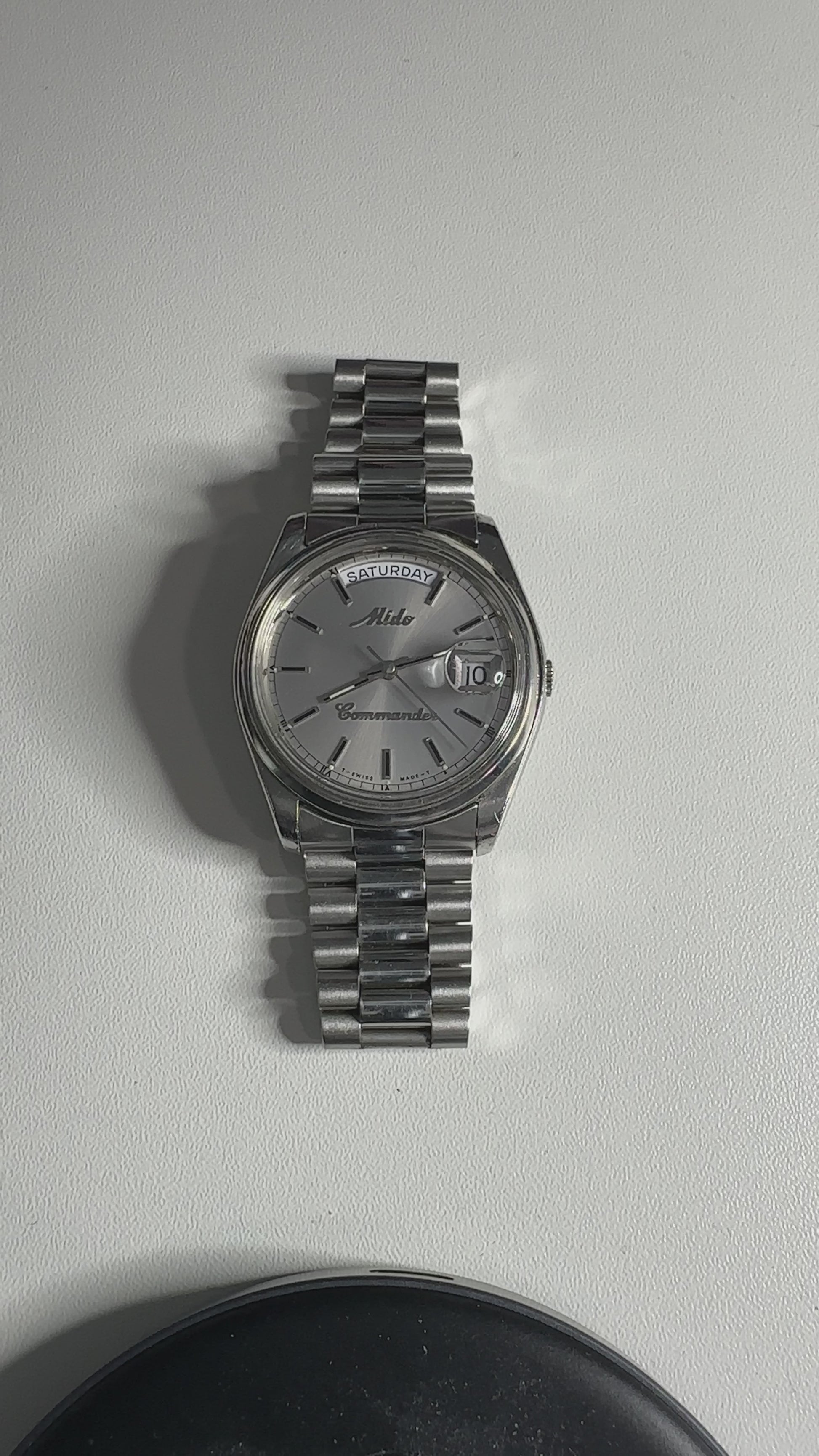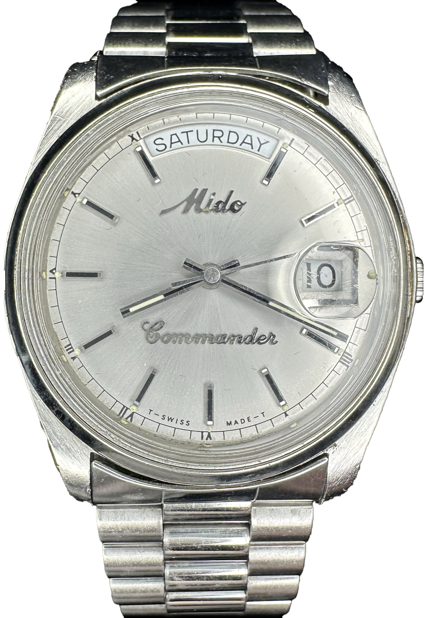 Mido Commander Day-Date President Vintage Automatik-Armbanduhr Silber Ref. 8224