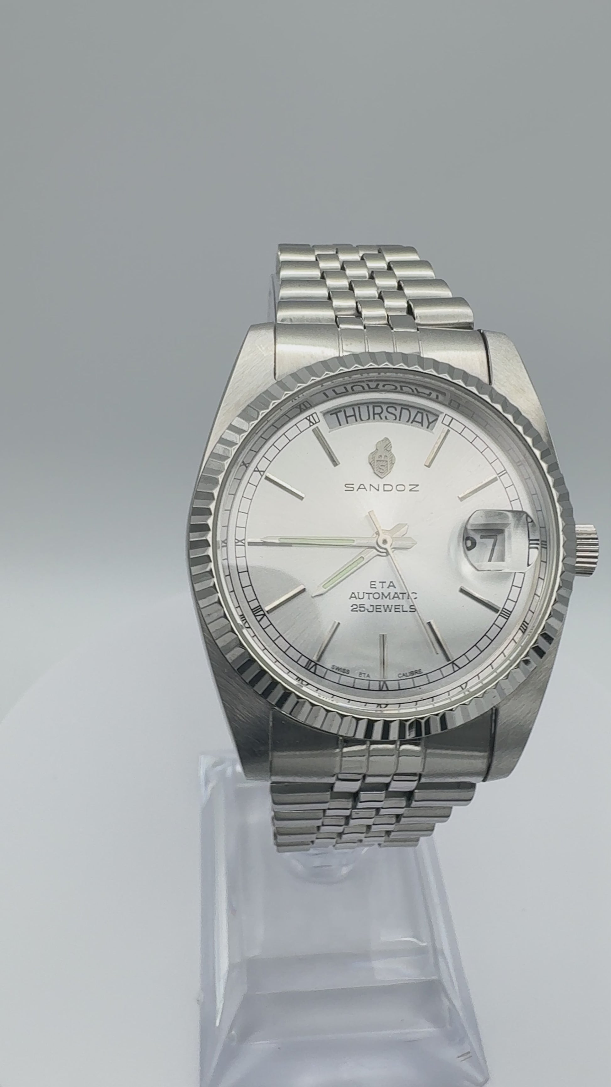 Sandoz Vintage Automatik-Armbanduhr Day-Date President Silber 1782-D-34-8: