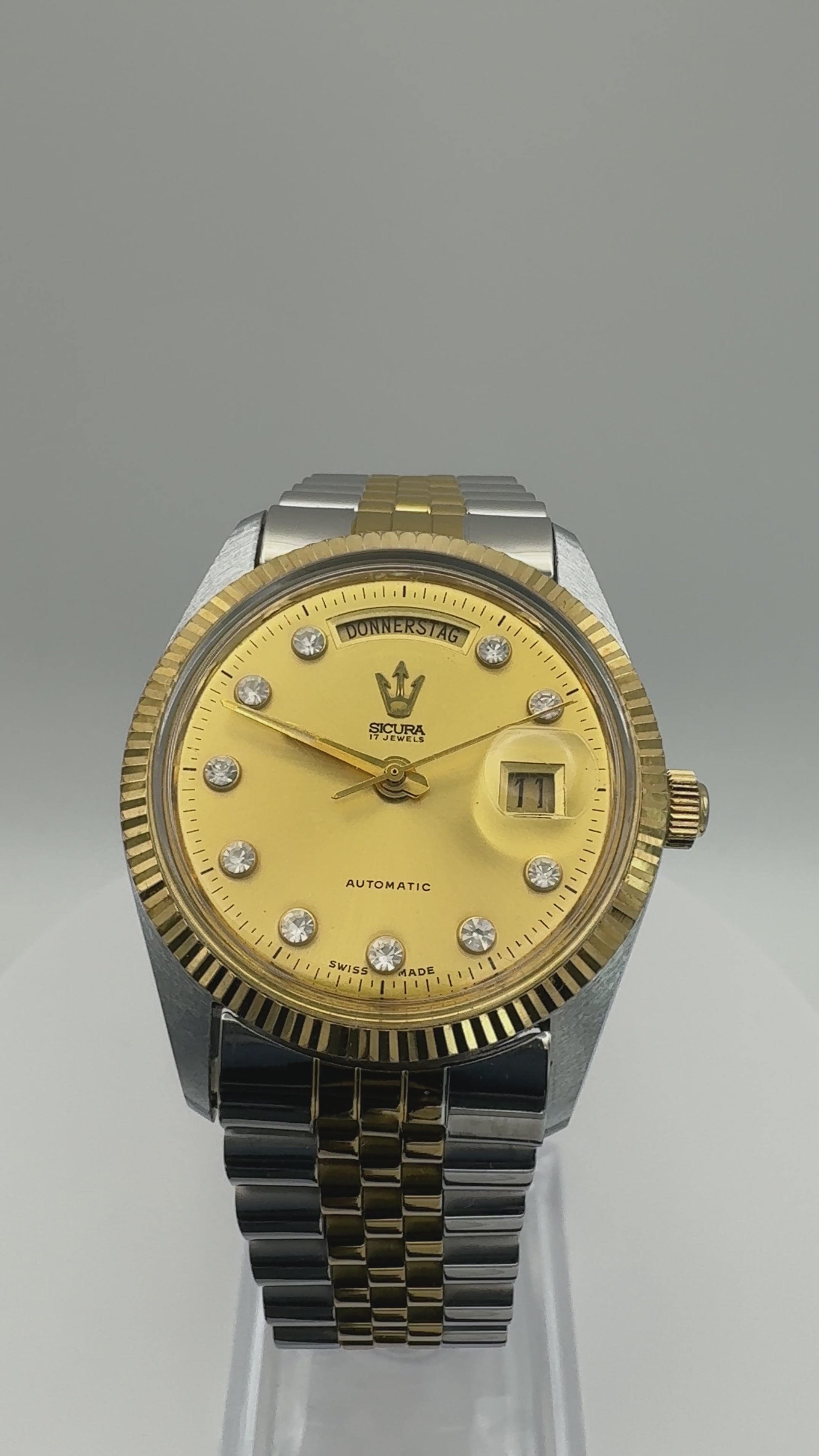 SICURA Ref. 9241 Day-Date Swiss Vintage Automatik-Armbanduhr President Two-Tone: